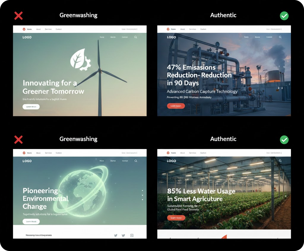 Authentic climate tech marketing isn't about being modest. It's about being honest. Specific beats vague. Data beats promises. Transparency beats polish.