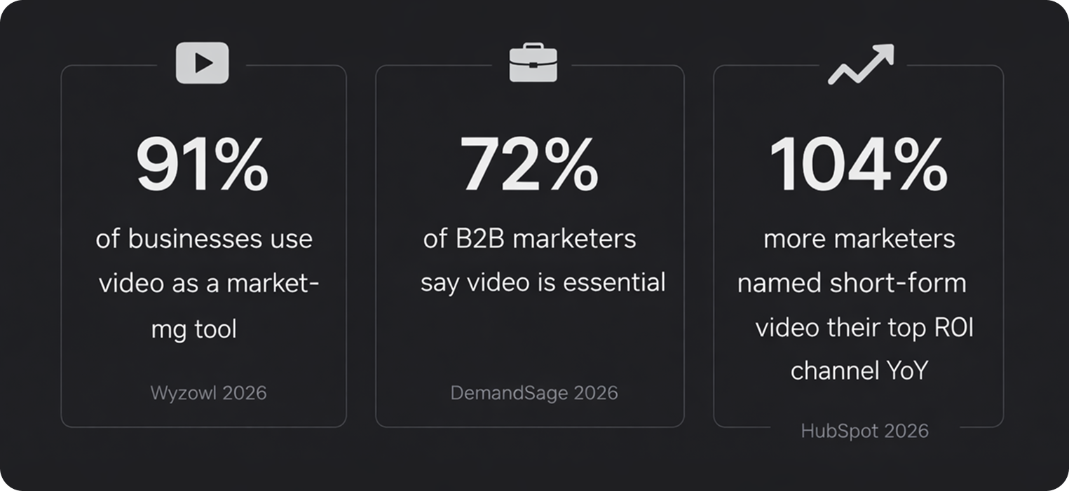 91% of businesses now use video as a core marketing tool, according to Wyzowl's 2026 report. Among B2B marketers specifically, 72% consider it essential (DemandSage, 2026). And 93% of B2B buyers say video content is an important factor when evaluating a vendor.