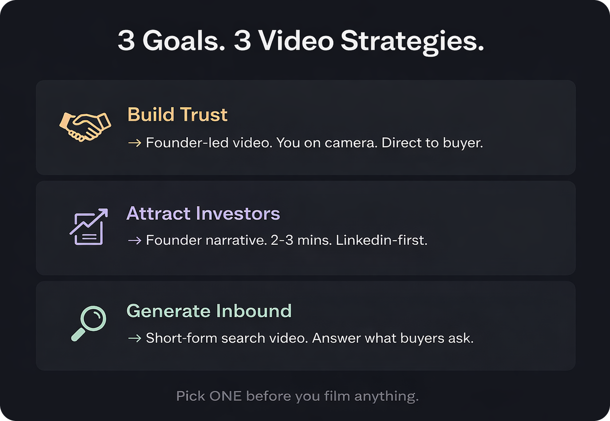 The mistake most startups make is treating all three goals simultaneously. That produces average content for no one.
