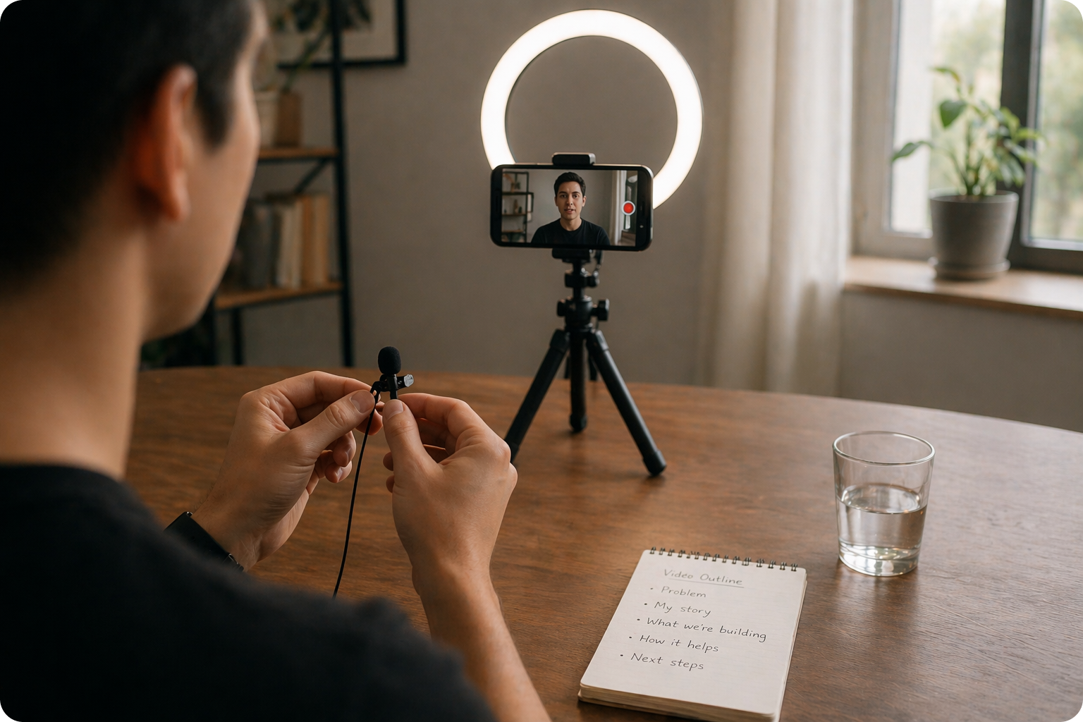If you struggle with on-camera delivery, we have written specifically about that in our guide on founder-led video and why being on camera matters.